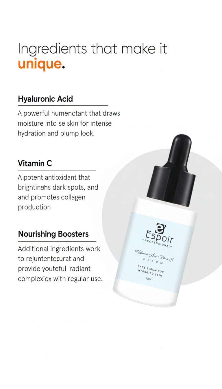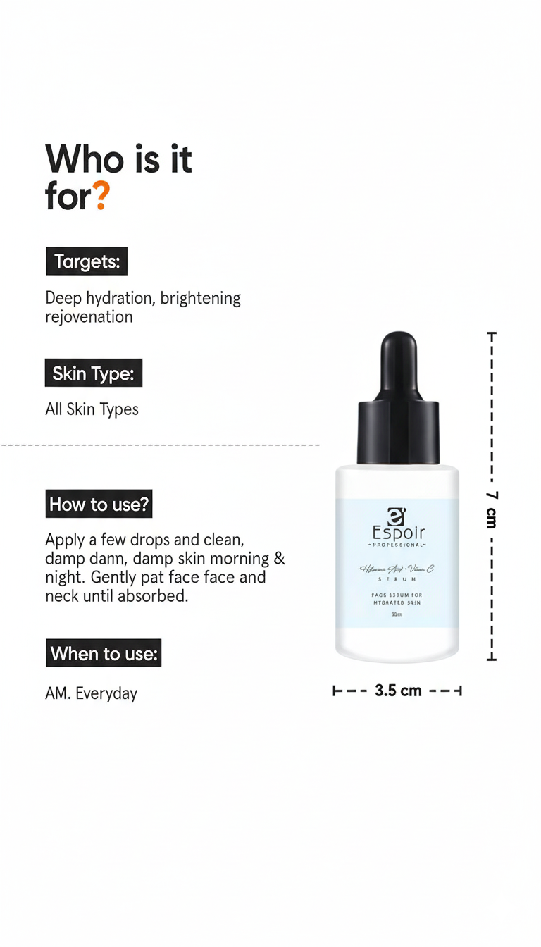 This hydronic acid and vitamin C serum combines two powerful ingredients to deeply hydrate and brighten skin. With the hydrating properties of hyaluronic acid and the brightening effects of vitamin C, this serum provides a nourishing and rejuvenating boost to your skincare routine. See a more radiant Khabar and youthful complexion with regular use.